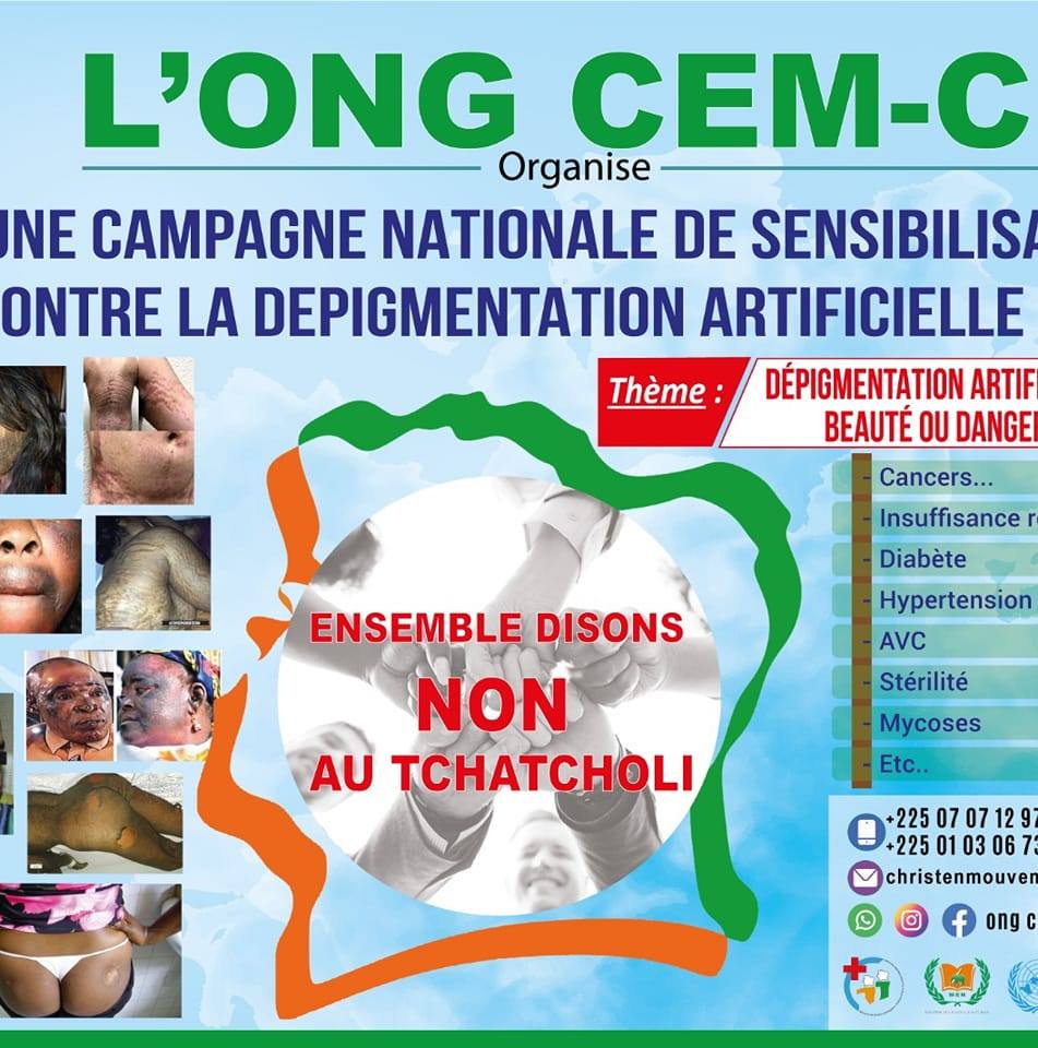 « Nous sommes une ONG à but non-lucratif dénommée CEMC-CI (centre d’éducation médicale et citoyenne de Côte d’Ivoire) qui intervenons dans plusieurs domaines notamment, la défense du droit de l’homme en général et singulièrement celui de la femme et l’enfant, la lutte contre la dépigmentation artificielle, la lutte contre la pauvreté par l’autonomisation de la femme rurale et urbaine, la lutte contre les pandémies et le VIH SIDA puis la mutilation génitale. En réalité, nos motivations sont parties du triste constat aberrant dans la société face aux désastres sanitaires esthétiques et émotionnels comme conséquences aux victimes laissées pour compte », a déclaré M. Marcelin Doh, président fondateur de l’ONG CEMCI-CI.